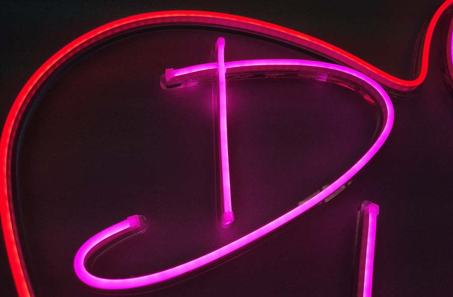 霓虹灯条字也可以简单的叫做霓虹字,只不过采用的光源是霓虹灯条,所以相对规范一些的叫法就是霓虹灯条字,霓虹灯条字具备良好的展示效果和耐候性能,总的来说,其主要优点和特点有以下6个:
